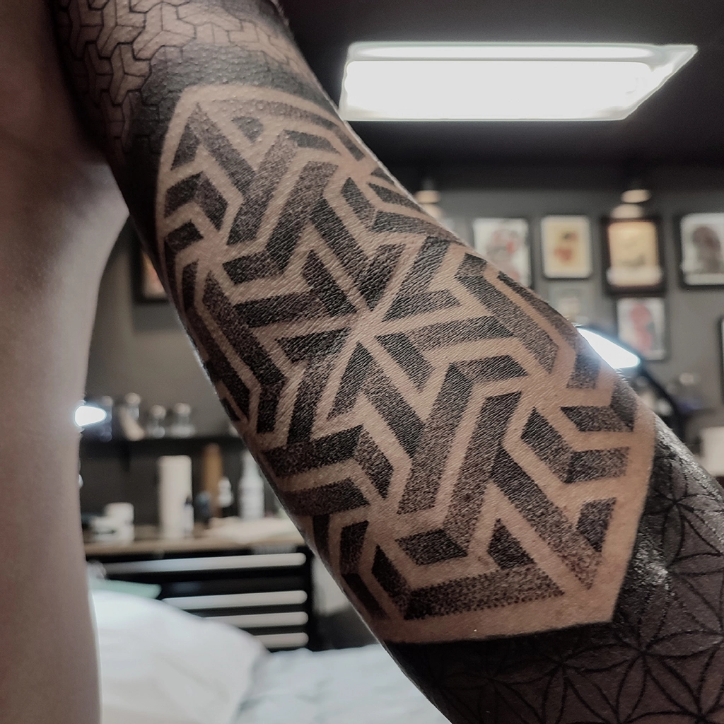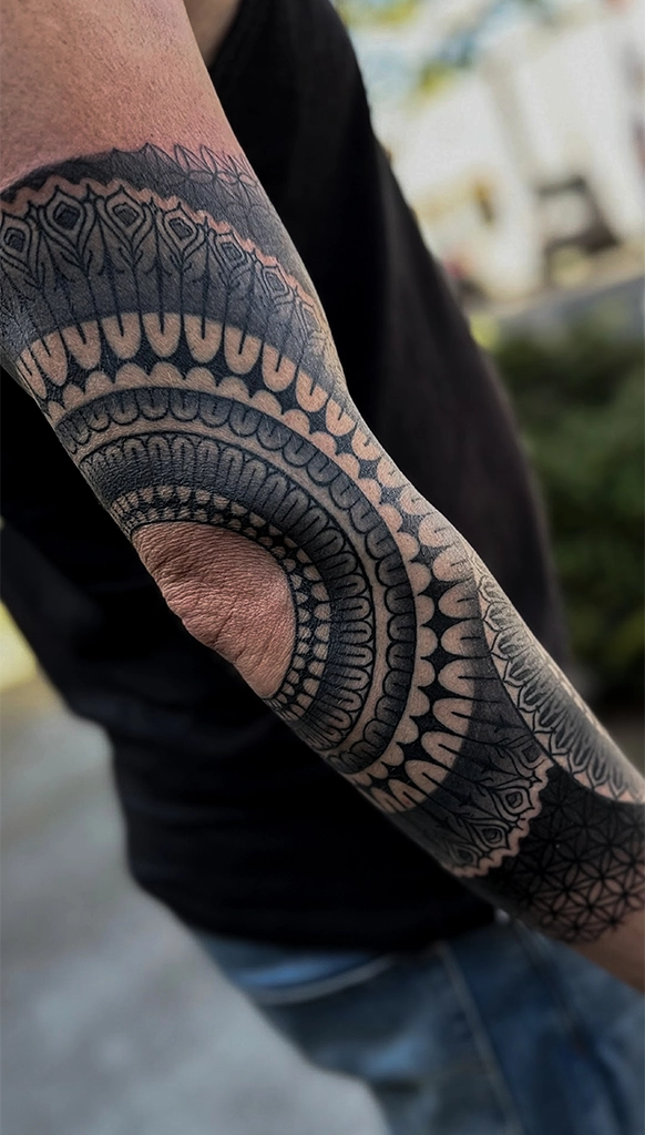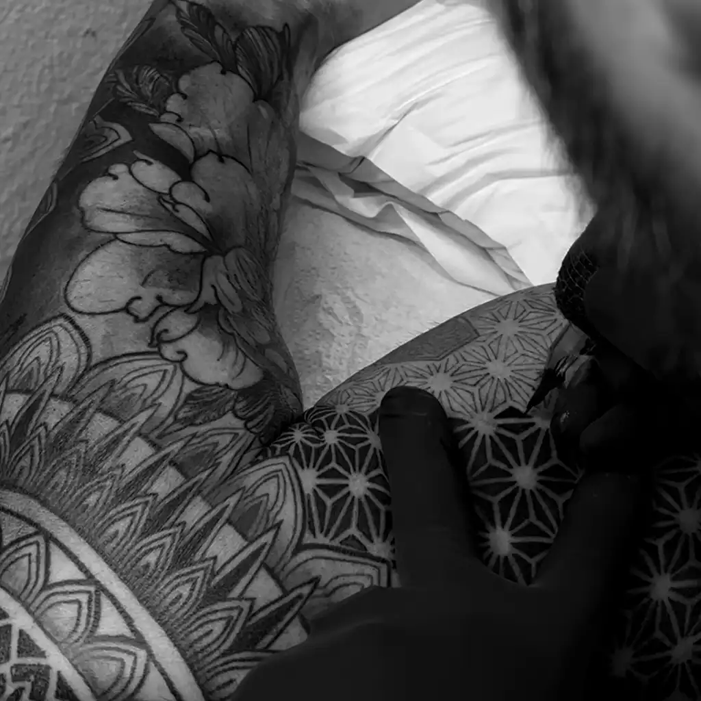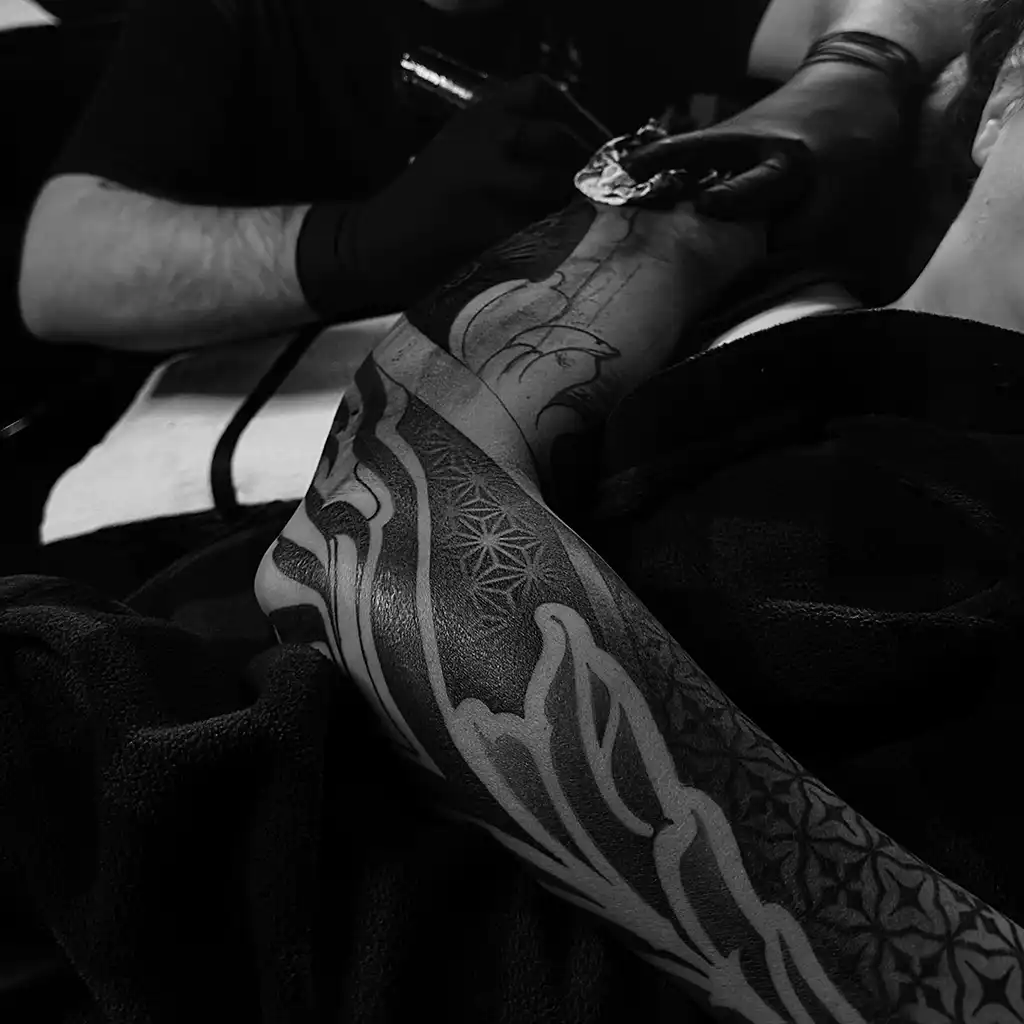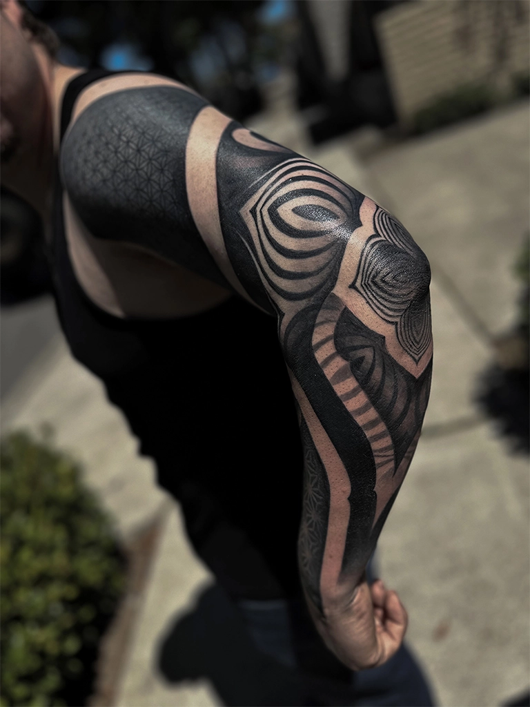 A tattoo artist specializing in Black Ornamental Tattoos and Geometric designs that are bold, timeless, and flow naturally with the body.