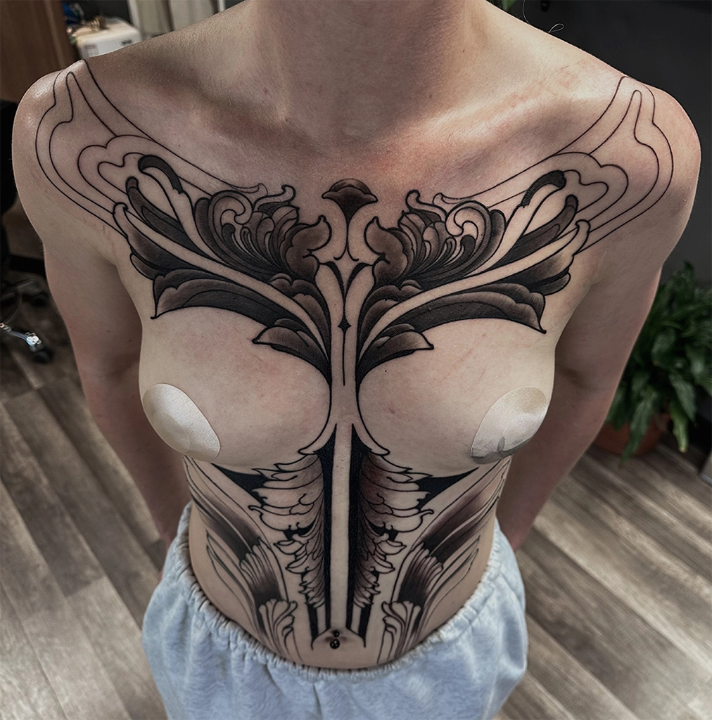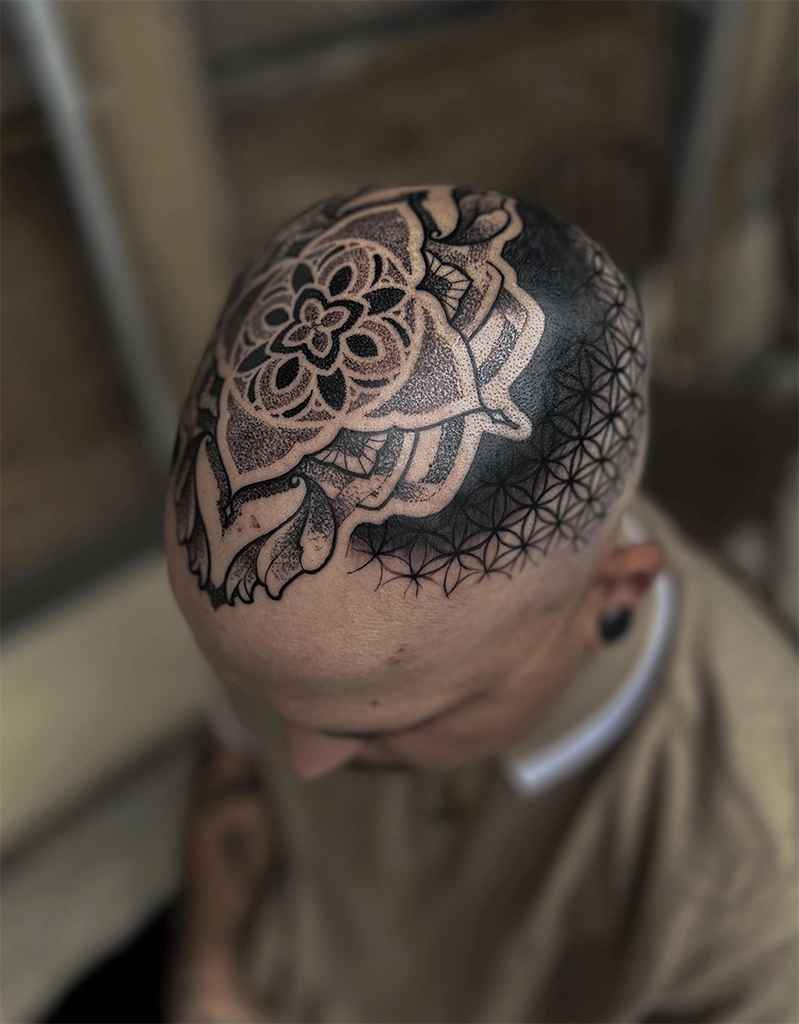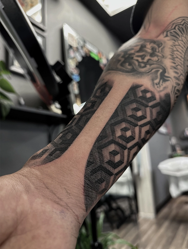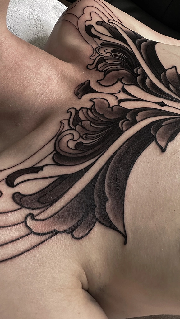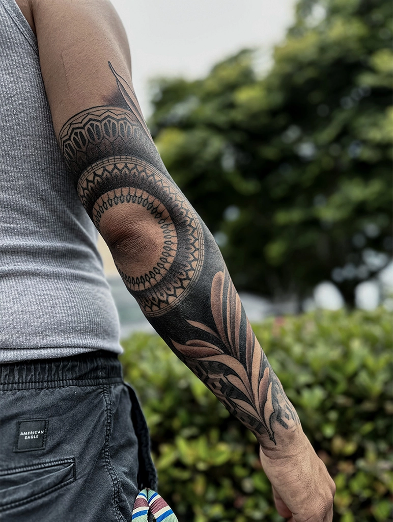 A tattoo artist specializing in Black Ornamental Tattoos and Geometric designs that are bold, timeless, and flow naturally with the body.